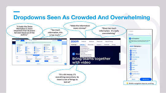Conducted moderated user testing to understand how users interpreted Zoom’s offering, revealing gaps in product awareness and difficulty forming a clear mental model of the platform.